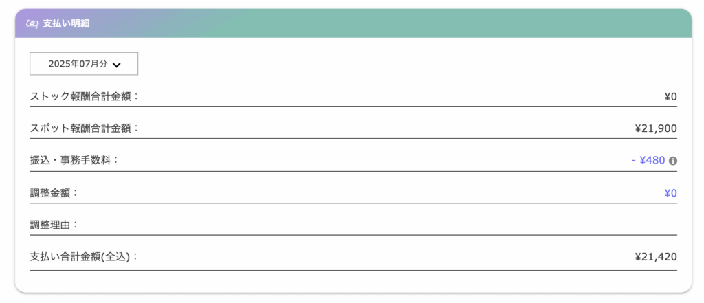 【私の初回の報酬明細(スポット報酬)】